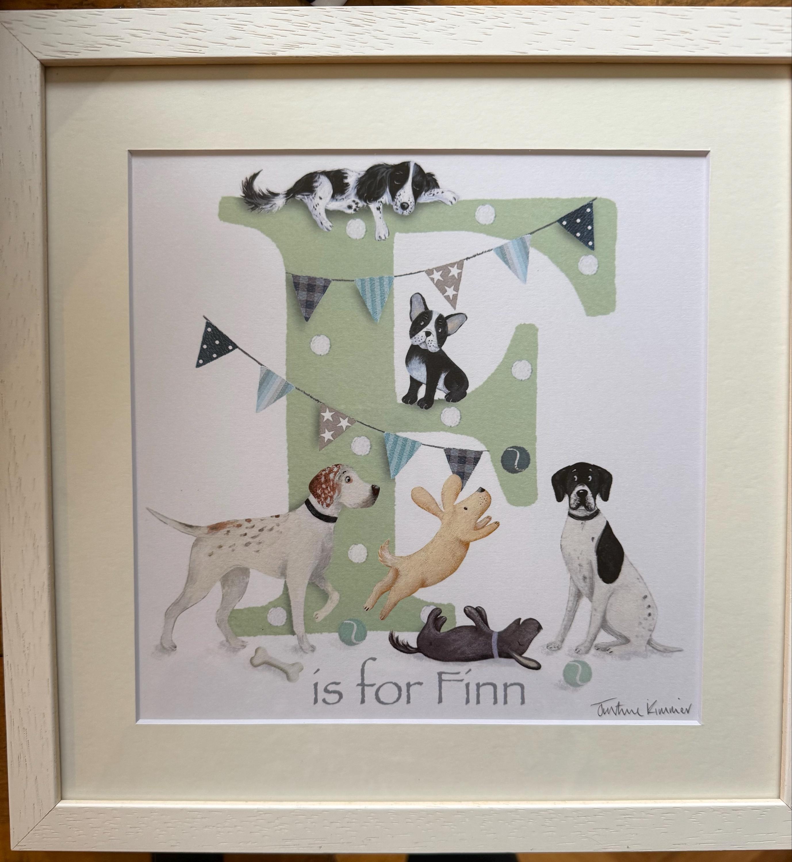 Puppy Dog Illustrated letter / initial art print. Any letter can be illustrated.