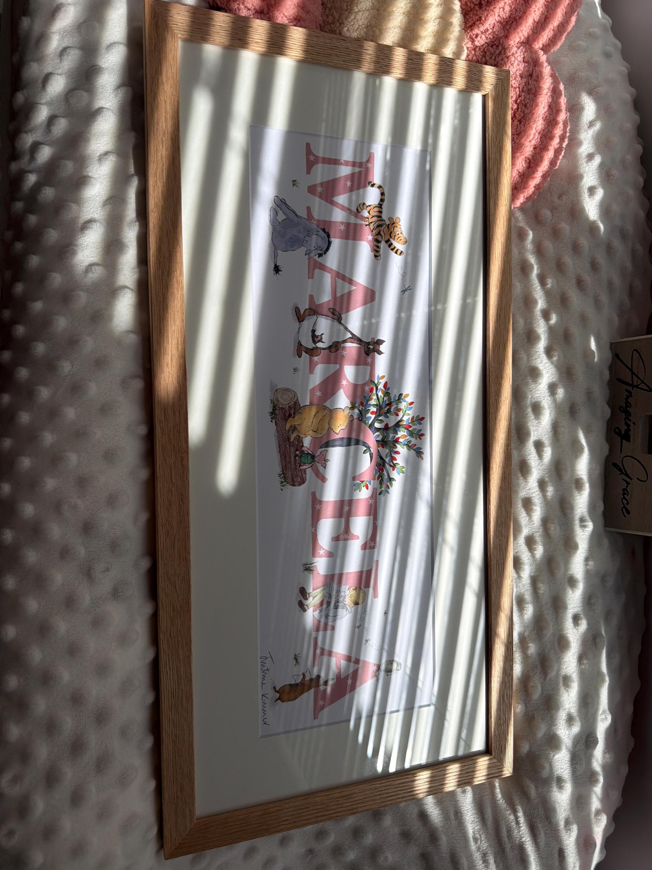 Classic Winnie the Pooh and friends name illustration art print. Illustrated in the style of A.A. Milne's original classic Pooh bear tales.