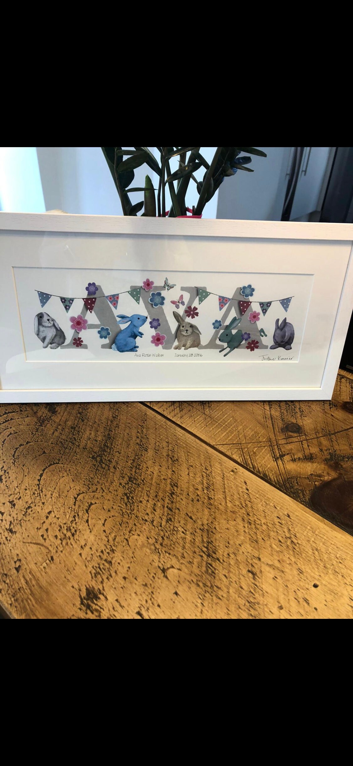 Please contact me with the name you would like illustrated when ordering, and any personal information / special message you would like detailed along the bottom of the illustrated name.